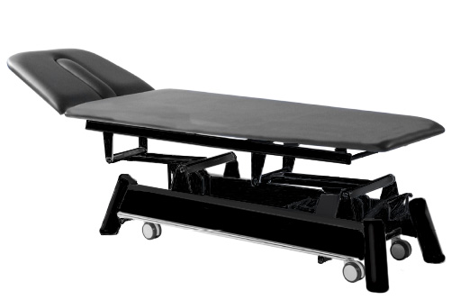 Behandlungsliege mit ein- oder dreiteiligem Kopfteil.